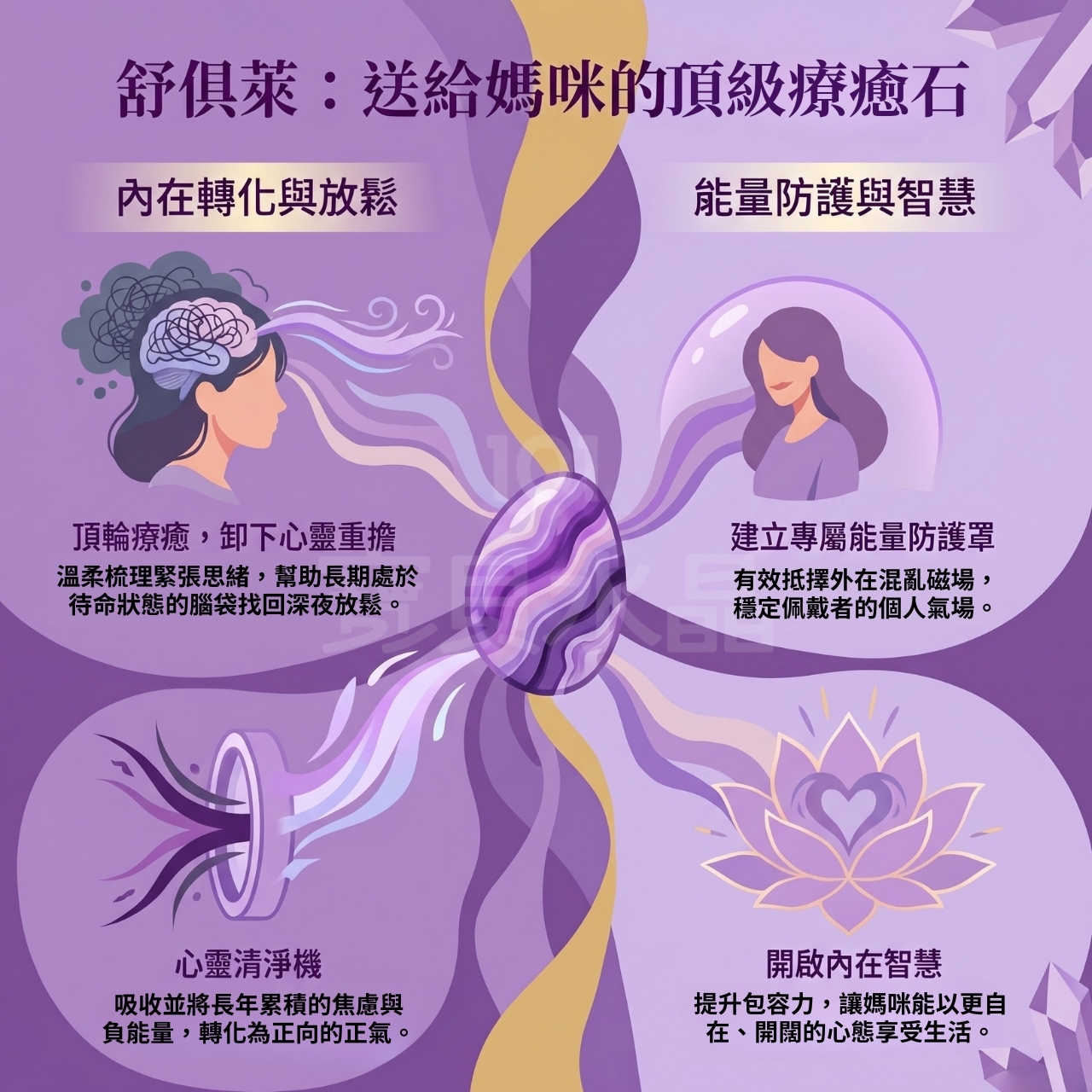 它擁有強大的紫色光頻,能深層淨化頂輪,給媽咪需要的守護能量: